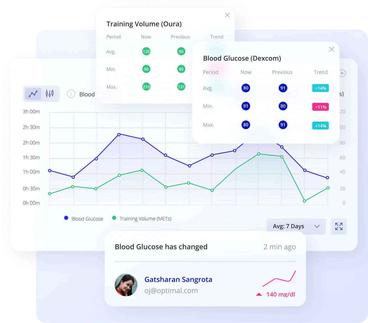 Stream HRV, glucose, sleep and habit data into one view.